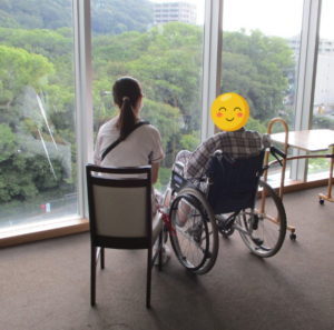 痛みが落ち着くと歩行器を使用し明るいラウンジへ行き、新聞を読んだり野球を観戦したりして過ごされていました。
