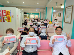 最後に院長先生がGoodJibカードを書いているところの写真をもってみんなで集合写真を撮りました。